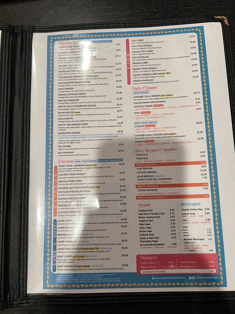 Enjoy a relaxing dining atmosphere, whether indoors or on the heated outdoor patio. With excellent service and a commitment to sustainability—offering compostable containers and plastic-free packaging—Made in India is not just a meal; it’s an experience worth savoring.